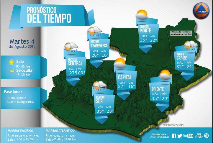Lluvias dispersas con actividad eléctrica por la tarde o noche. Vía: Conred